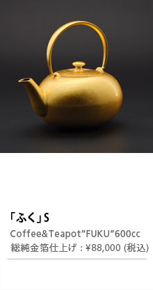 「縮緬(しぼ)肌」と呼ばれる日本独特の絹織物の肌をティーポットの表現しました。鋳物では難しい肌造りで、高度な技術を要します。